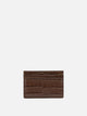 Portacarte "Exotic Line" Tom Ford realizzato in pelle con stampa coccodrillo e finitura lucida. Struttura sottile e compatta, caratterizzata da superfici rigide e bordi netti. La costruzione utilizza tagli di pelle accostati con cuciture ridotte al minimo. Il logo Tom Ford è applicato in rilievo sulla parte frontale. L'assetto interno prevede comparti paralleli pensati per carte di credito o biglietti da visita.