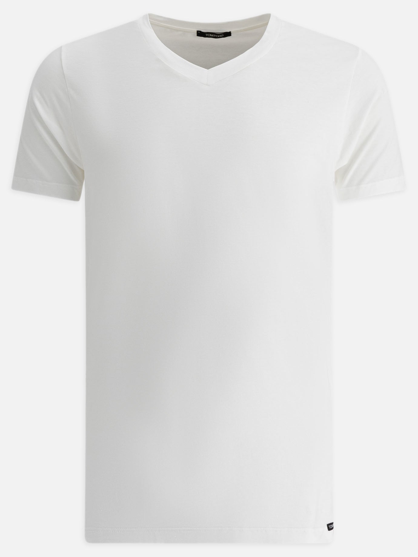 T-shirt intima scollo a V Tom Ford, realizzata in jersey. La costruzione a maniche corte presenta scollo a V pulito e una piccola etichetta Tom Ford applicata all'orlo inferiore. Silhouette essenziale e lineare, progettata per aderenza al corpo senza cuciture visibili. Struttura elastica che assicura tenuta e flessibilità.