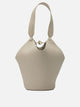 Borsa a mano "Lotus Mini" Khaite, realizzata in pelle martellata, presenta una struttura ispirata a una sciarpa e si distingue per la leggerezza della costruzione. La base arrotondata garantisce stabilità durante l'utilizzo, mentre la silhouette compatta favorisce una presa ergonomica a mano. La chiusura interna è dotata di alamaro gioiello, elemento funzionale che assicura la protezione del contenuto.