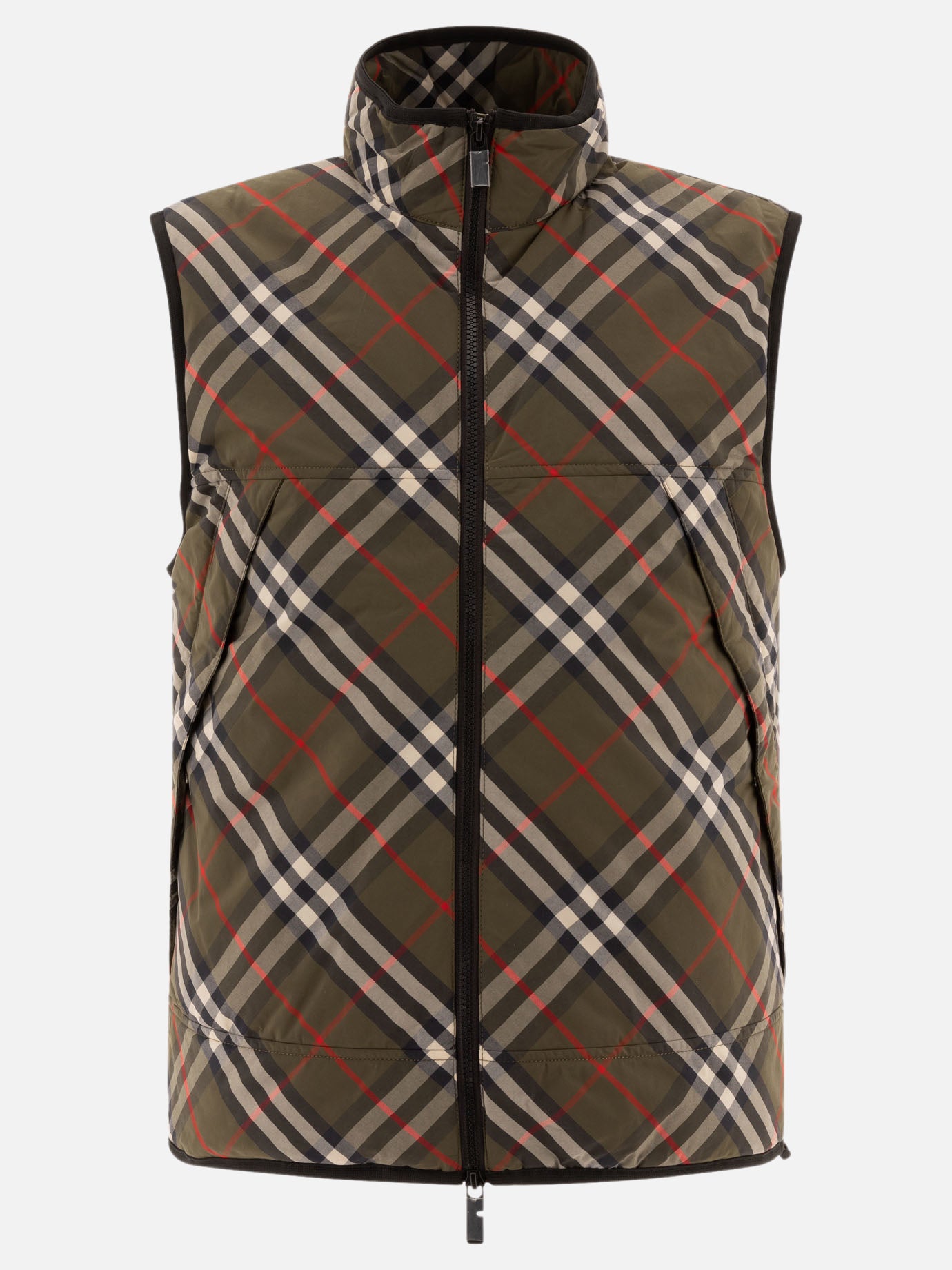 A lightly padded nylon vest from Burberry is the perfect accessory to add a touch of elegance and functionality to a man's wardrobe. With its classic Burberry Check pattern and funnel-neck silhouette, this vest is designed to be versatile and suitable for any occasion. Worn under a coat, it provides a close fit without compromising comfort.