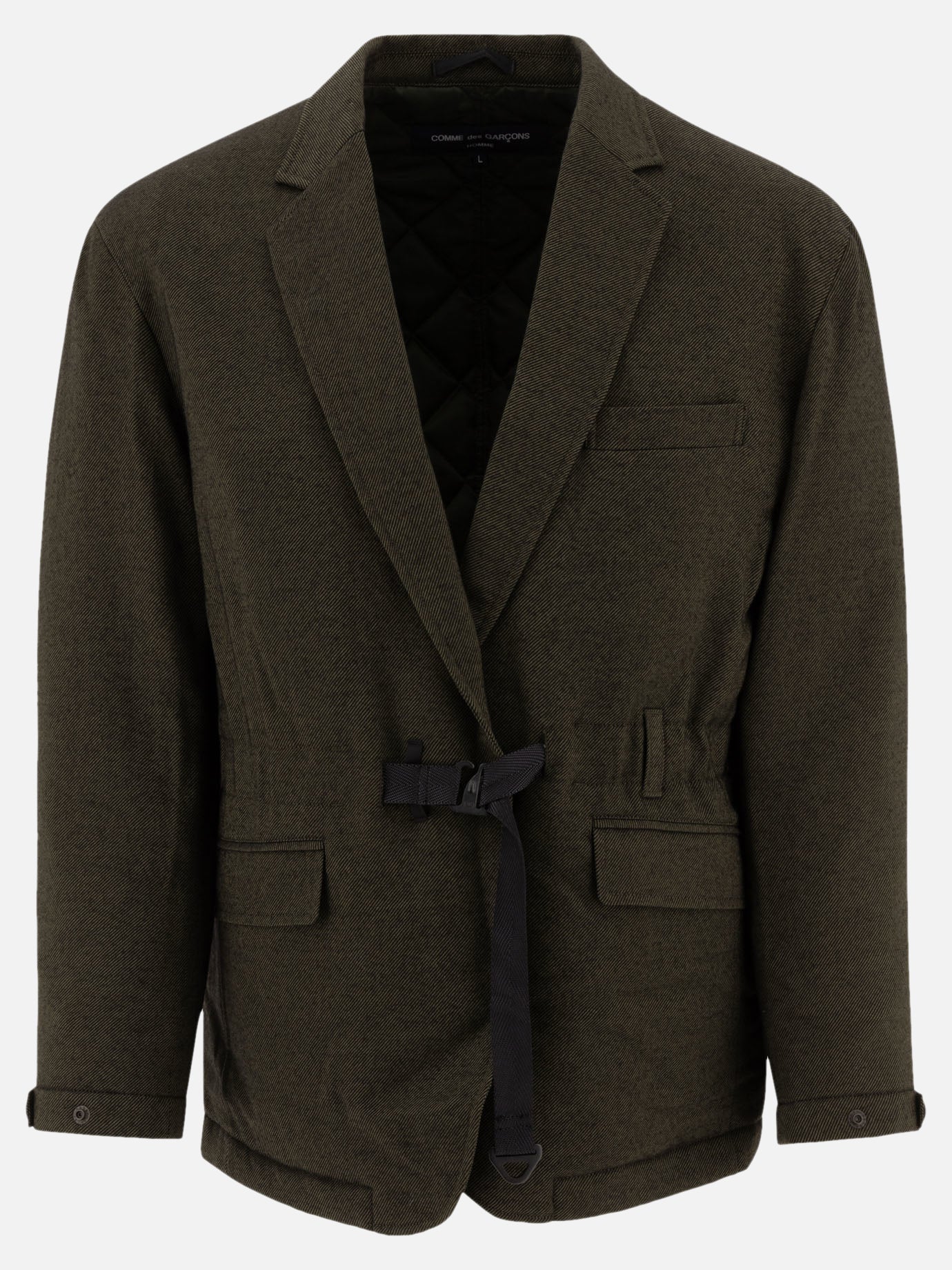Comme Des Garçons Homme's drawstring blazer is a masterpiece of elegance and functionality. This garment, featuring a refined solid color, is perfect for the modern man who wants a flawless look without sacrificing comfort. Its relaxed fit and long sleeves make it ideal for any occasion, from business meetings to evening outings.