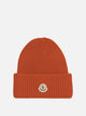 Moncler cashmere and wool beanie, constructed of heavy knit with brioche stitch work. The 3-fine structure defines a soft, enveloping silhouette. The yarn, composed of a virgin wool and cashmere blend, provides thermal insulation and uniform texture. A front-applied felt logo patch identifies the product. Perfect for men and women, with stretch edging for a stable fit.