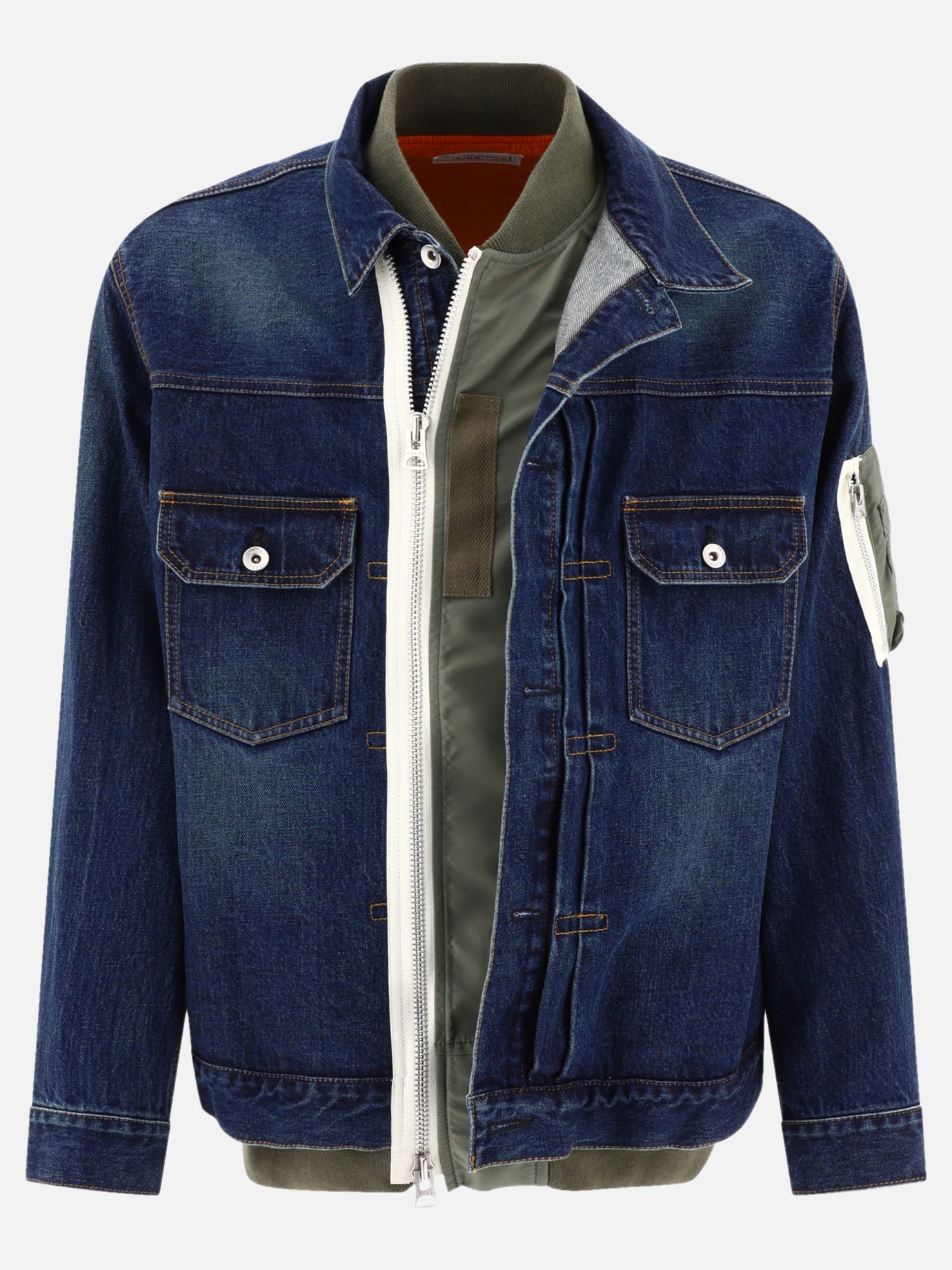 Sacai presents the "Denim x Nylon" twill jacket, perfect for the contemporary man looking for a modern and versatile garment. The hybrid construction combines high-quality materials, such as twill and nylon, for a unique and sophisticated look.