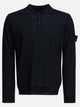 Stone Island wool polo sweater made of pure lightweight RWS-certified wool, knitted in a 14-gauge shaved knit. Long sleeve construction with linear construction, ribbed polo collar and central three-button closure. Ribbed finished edges on cuffs and bottom band, regular silhouette. Stone Island Ghost tone-on-tone badge applied on left sleeve.