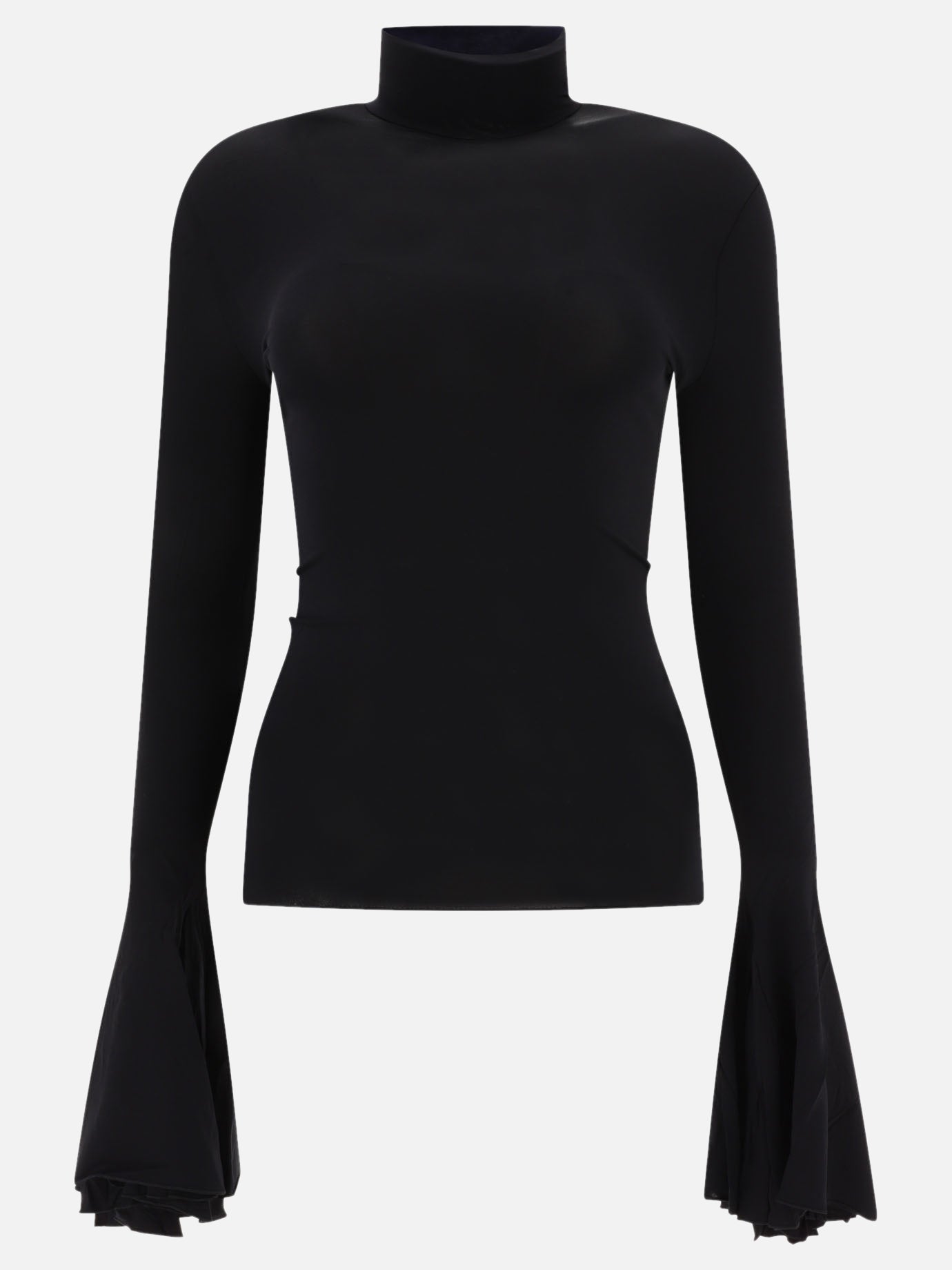 - High neck top with godet cuffs