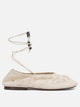 Alohas "Rosemary" ballet flats, constructed from cotton crochet, feature a lightweight and flexible construction. The open-weave upper promotes breathability for the foot. Thin laces wrap around the ankle and include wooden beaded trim. The silhouette is basic, with an elasticized neckline for an adaptable fit. The footbed is leather, while the rubber sole ensures stable footing and everyday comfort.