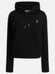 Ami Paris cotton hoodie features cropped cut and constructed of cotton fleece. The construction features a regular silhouette with an adjustable drawstring hood. Embroidery details include black Ami de Coeur logo positioned at chest and additional tone-on-tone Ami embroidery at the base of the neck at the back. Drawstring ends and engraved silver-colored metal eyelets complete the construction.