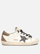 Golden Goose "Super-Star" sneaker with an upper made of cowhide leather and low structure. The silhouette features a linear construction with suede side-applied star, leather heel, and suede back insert. Lining composed of cowhide and cotton for a uniformly comfortable feel. Flexible and durable rubber outsole finished with vintage hand treatment that enhances the surface texture.