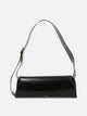 Jil Sander "Cannolo" small shoulder bag made of leather, constructed with compact structure and essential geometric lines. The silhouette is cylindrical, defined by smooth trim and outlined edges. Adjustable leather shoulder strap integrated at the top, top magnetic button closure. The model features an interior card slot, embossed Jil Sander logo with foil applique on the front surface. Nappa leather interior lining.