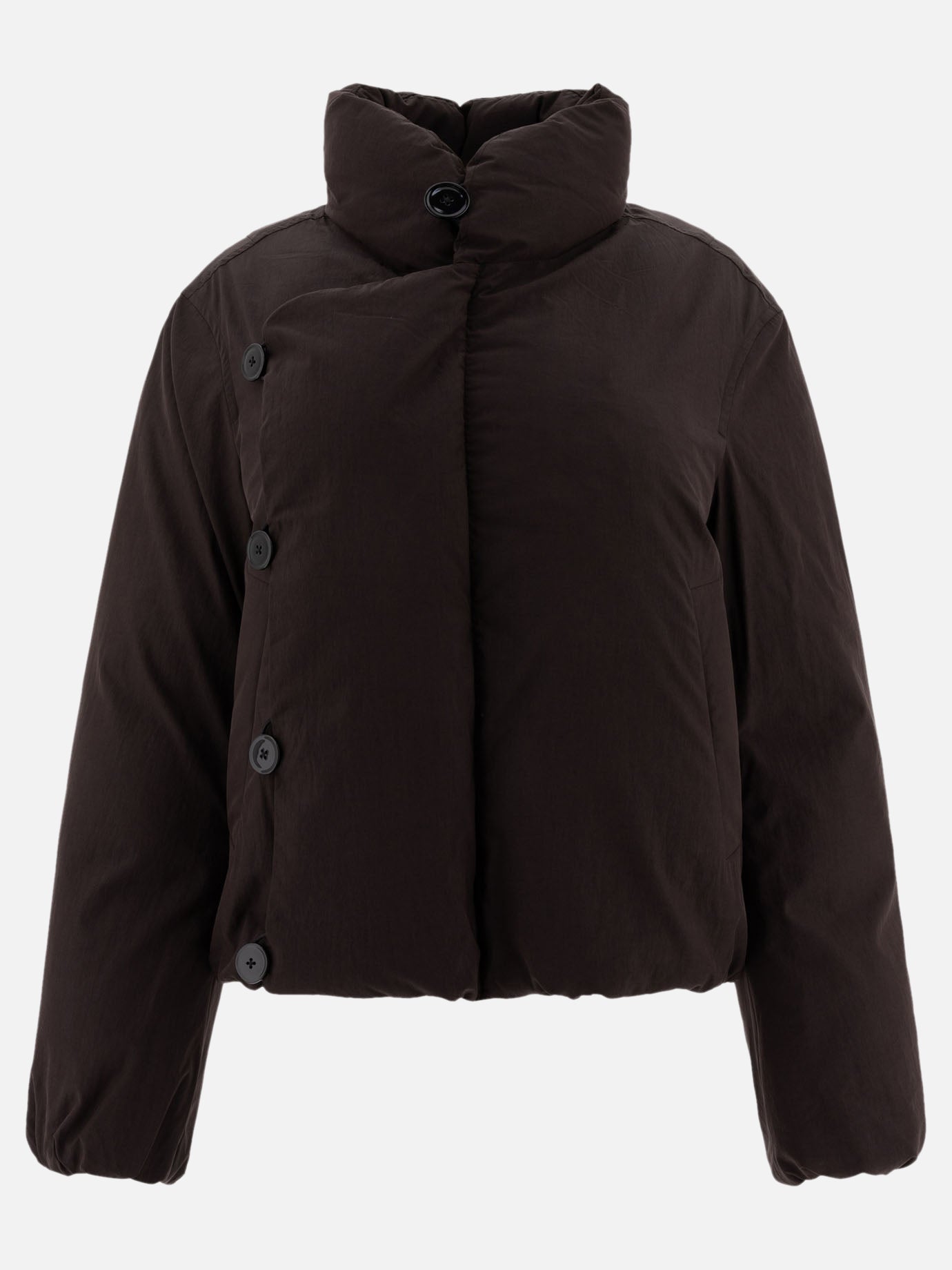 Lemaire's Lo Short Puffer Blouson is a short down jacket with an innovative design, designed for women who love style and comfort. This garment, made of a soft cotton blend with a water-repellent finish, offers optimal protection against the cold thanks to its feather filling. Its rounded silhouette gives it a modern and refined look, making it the ideal garment for the outdoors.
