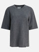 LouLou De Saison wool-blend "Raven" crew-neck sweater made of soft yarn with a predominance of wool and yak. The structure features a straight silhouette with short sleeves and a round neckline. The knit is knit in shaved stitch, with a flat-ribbed finished collar edge, hem, and cuffs. The loose fit allows for a loose fit designed for everyday wear.