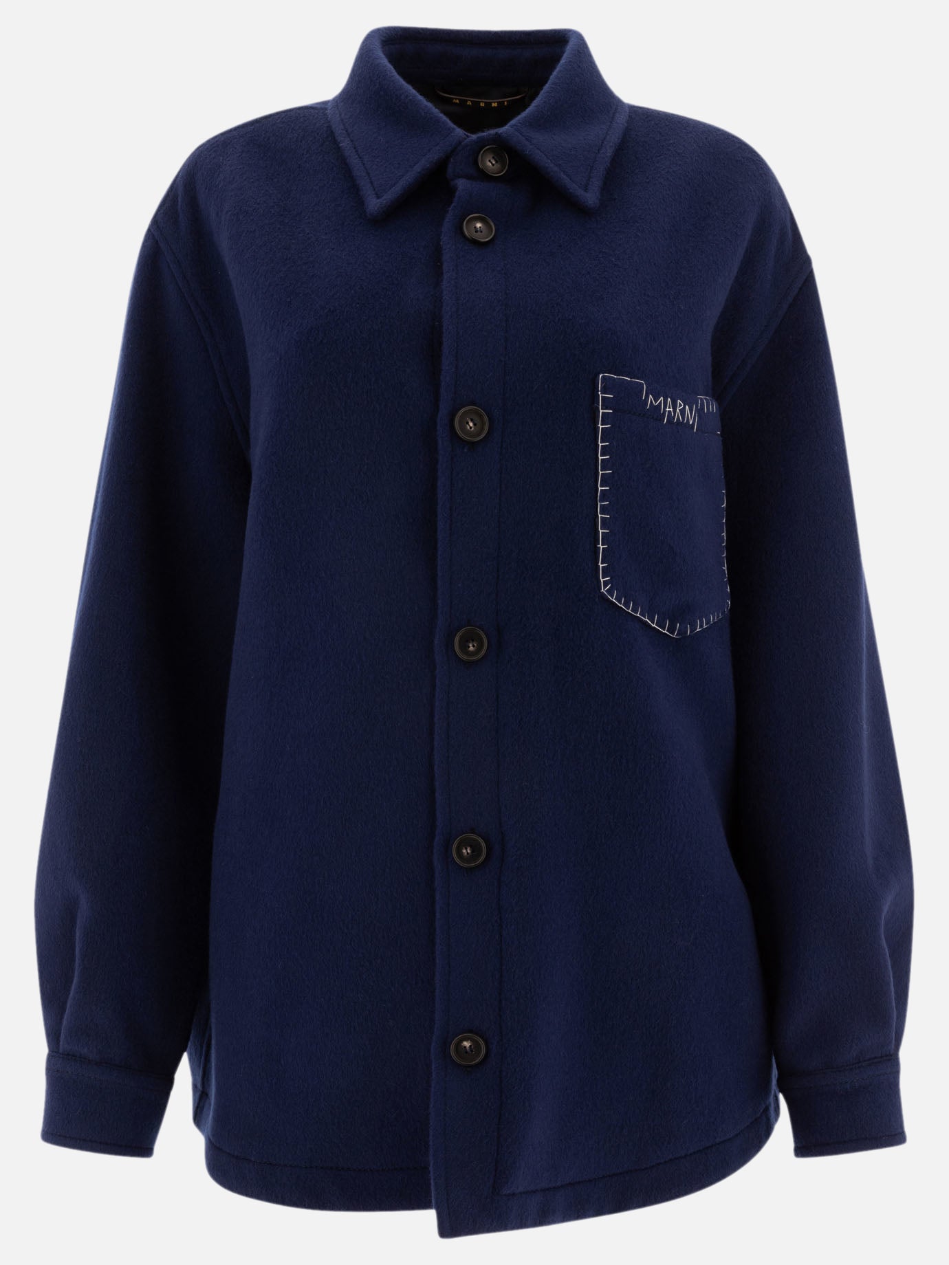 The Marni overshirt style coat is a masterpiece of elegance and functionality. This garment features extraordinary versatility that makes it perfect for multiple occasions, both formal and casual. Ideal for the woman seeking a sophisticated look without sacrificing comfort, the Marni coat features a solid color and long sleeves, ensuring a regular fit.
